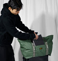 Built for high-volume, lightweight hauls, the Travellers Kit Bag takes our Trainer Bag’s functionality and gives it a shoulder-carry spin. Crafted from our signature Sage fabric—sourced from the same materials used in our tarps—the bag is rugged, weather-ready, and compact. When not in use, it folds down to a fraction of its original size, packing away easily until you need it. An exterior strap system is designed to carry longer items, like fishing rods or an axe.